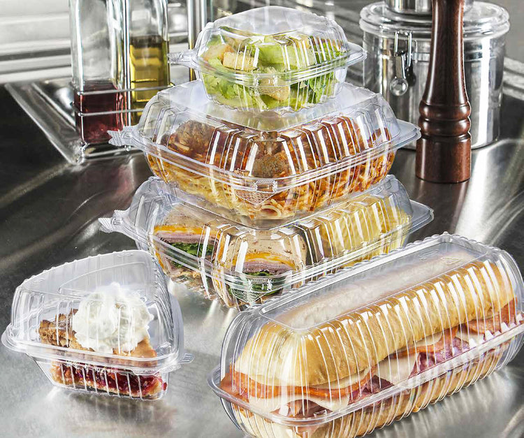 You can keep salads and appetizing with our Plastic Salad Go Containers. These clear hinged plastic sandwich take-out boxes give a good visual of what is contained within the box while ensuring foods do not leave the container until the seals are broken.