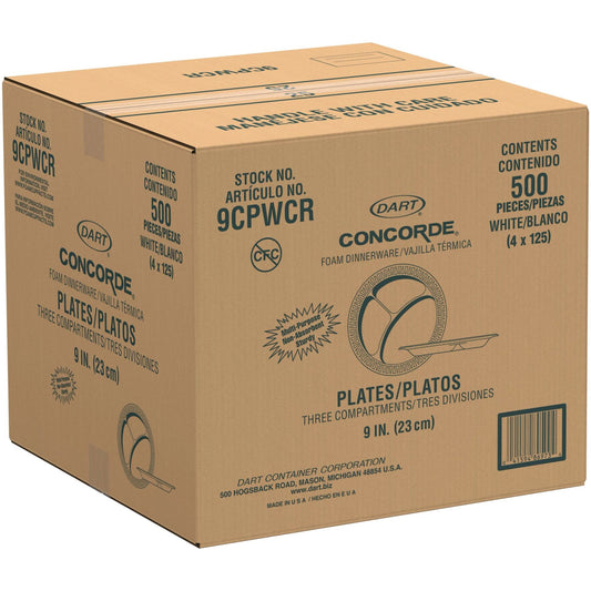 White Non-Laminated 3 Compartment 9" Round Foam Bowl (500) | Dart 9CPWCR